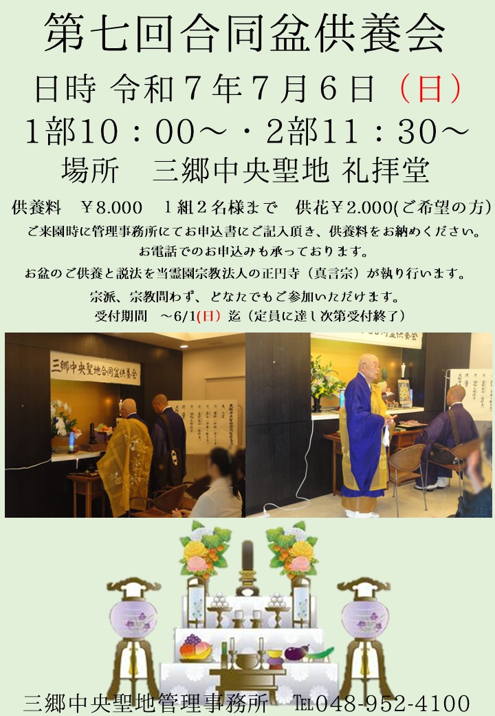 三郷中央聖地 礼拝堂にて合同盆供養を開催いたします!!