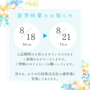 「夏季休業のお知らせ」ハートフルメモリーみずほ